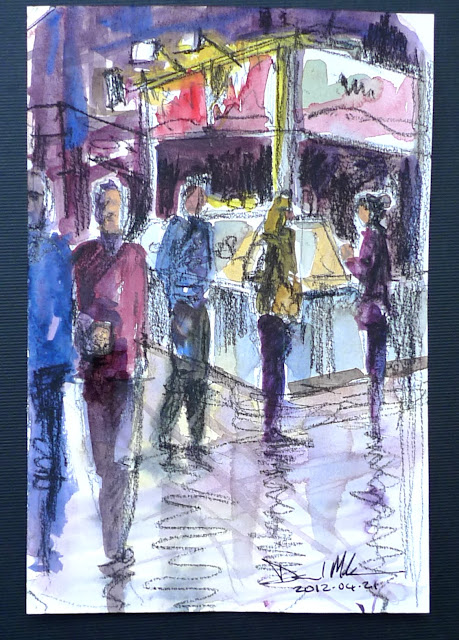 Yesterday was the 43rd World SketchCrawl. A sunny day was had in the suburbs of Stockholm with fellow urban sketcher, Nina. Skärholmen central square. We had a lot of fun even if we had a very persistent drunk yapping profanities into ours ears for what seem like several hours.